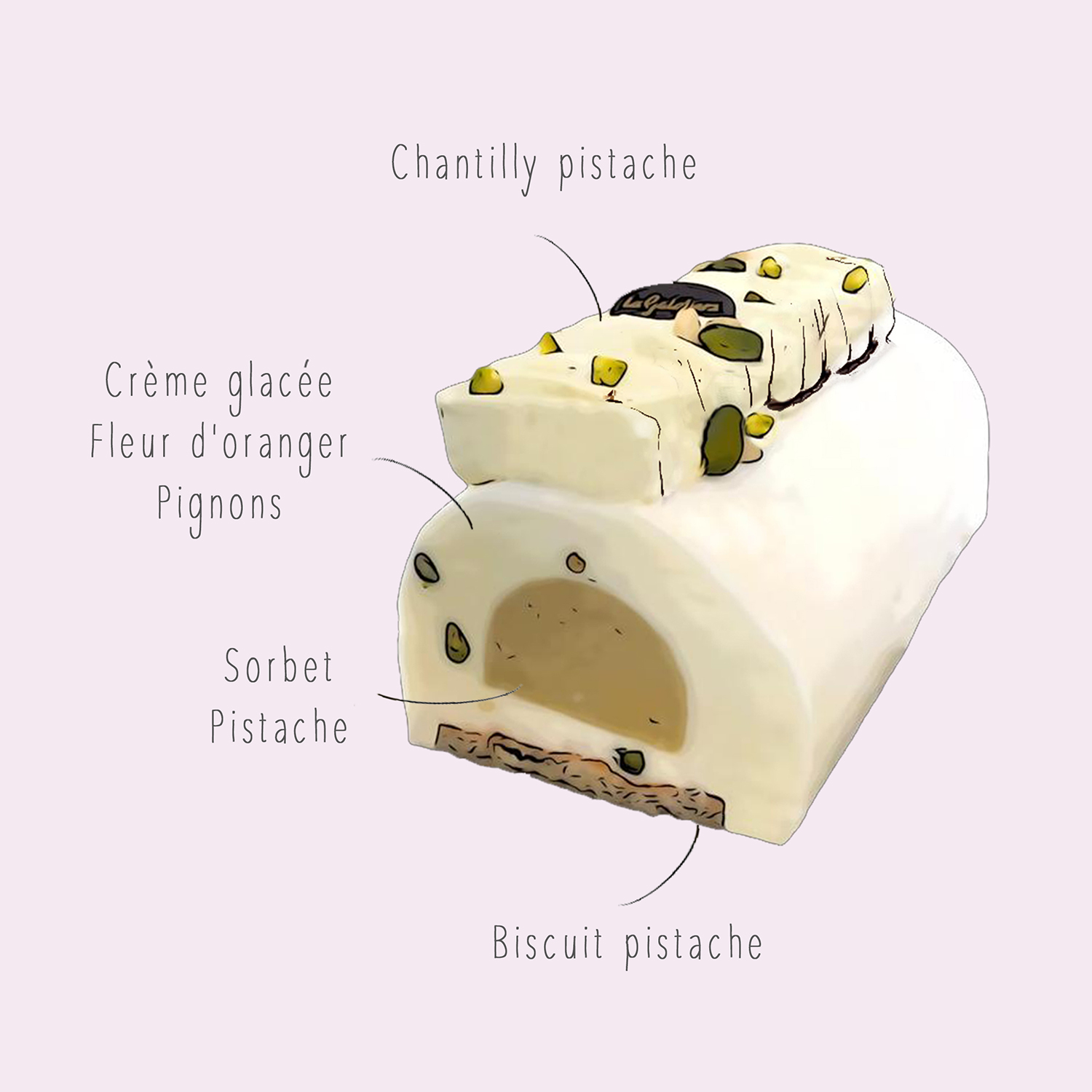 Composition de cette bûche glacée fabriquée à la Turbie :