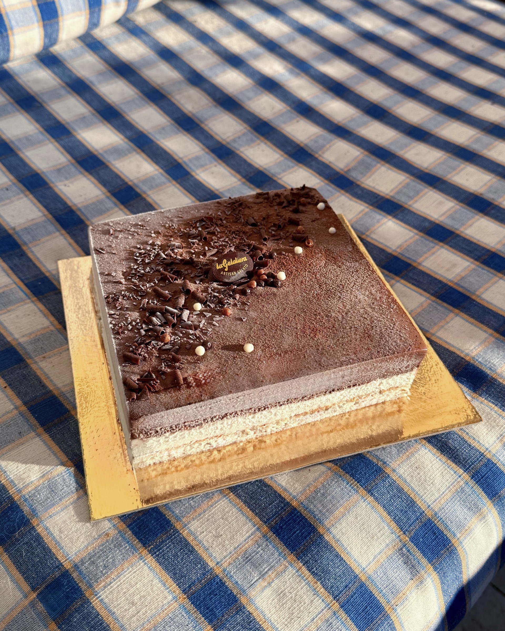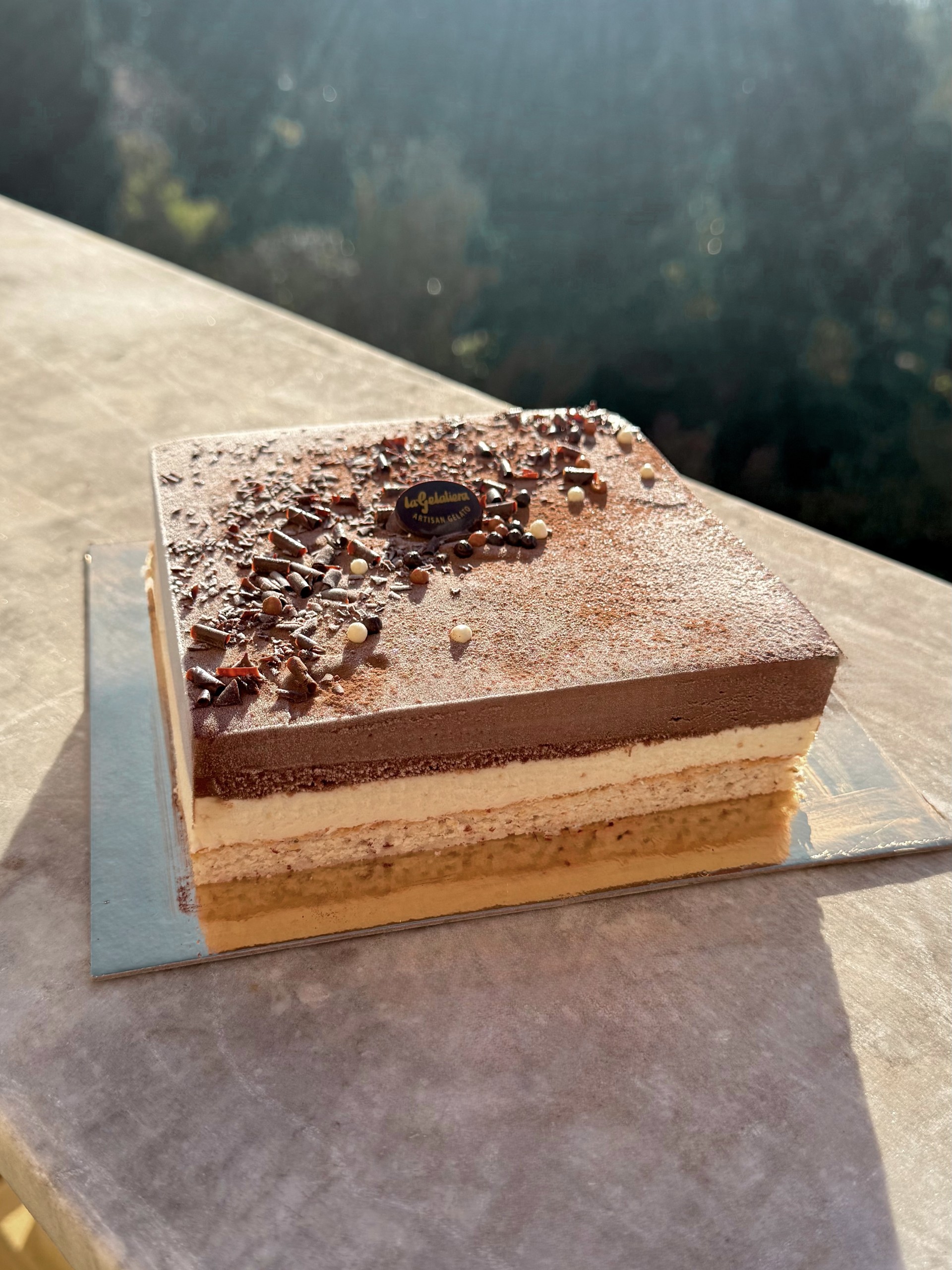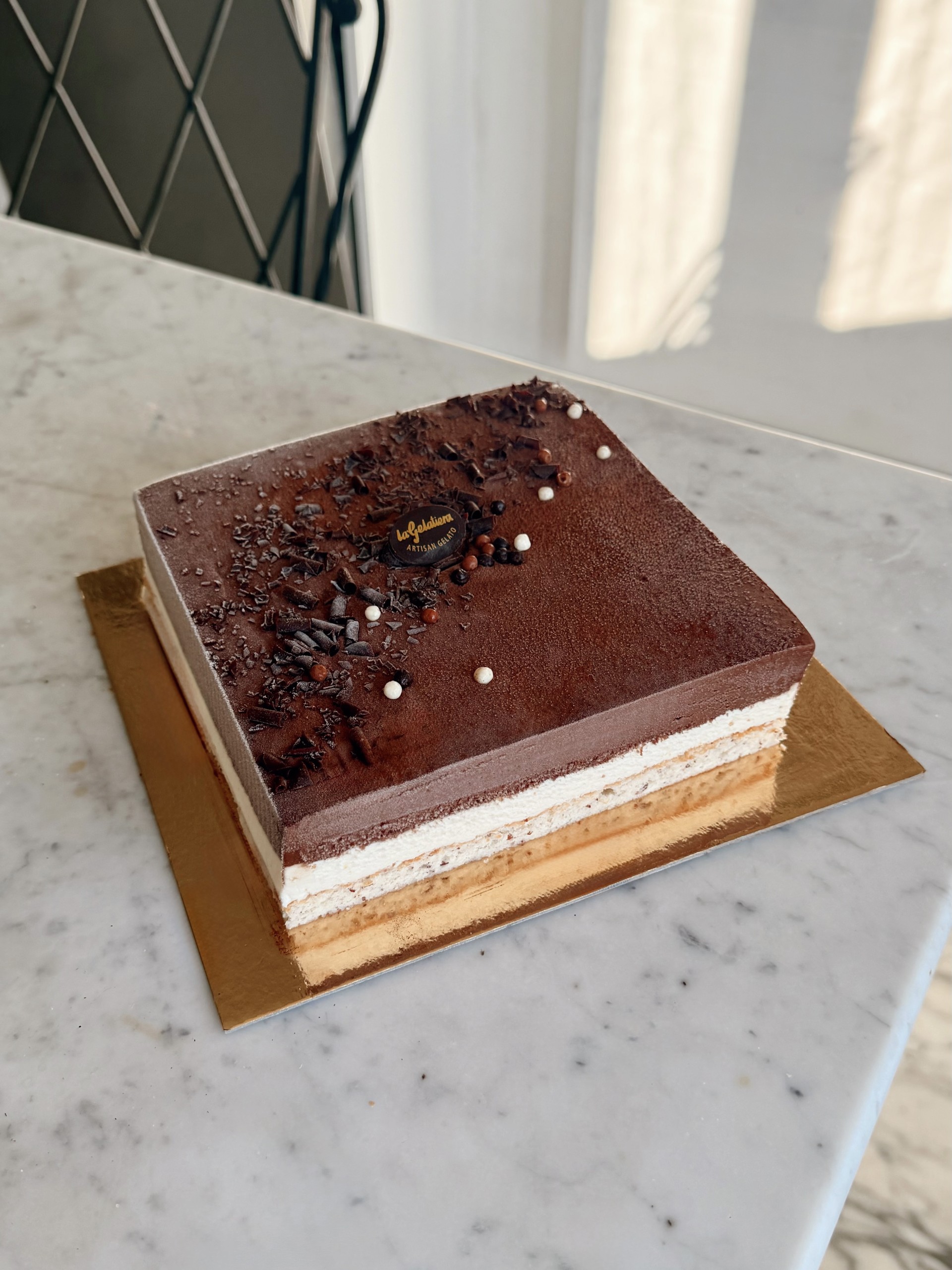Le tout repose sur un biscuit dacquoise aux amandes moelleux et légèrement croustillant, avec une fine touche de cacao pour équilibrer chaque bouchée.